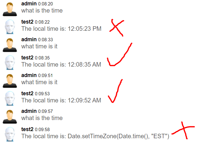 Hello, My bot learned the wrong answer for "what is the time?". It can correctly answer "what time is it?", so I want the answers to be the same. I am currently using this AIML script. But no matter what I try to edit, it will not solve the problem Can someone tell me what's wrong and how to fix my bot please? It is a simple check that my bot can reply with the time.